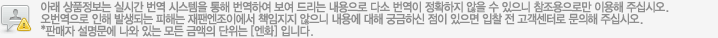 | 제조자/수입자 | 위의 상품은 해외 구매대행(수입대행) 서비스로서 국내의 A/S를 보장해 드리지 않습니다. |